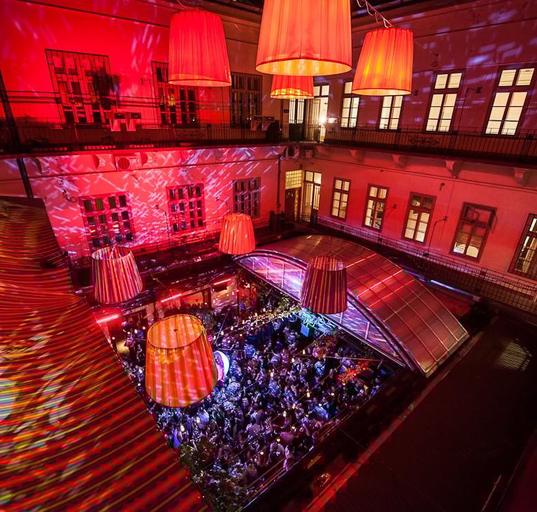 In the bustling epicenter of Budapest’s downtown area, Ötkert occupies a space with deep historical roots, once serving various commercial and civic functions in the city’s vibrant Józsefváros district. Today, the venue has been entirely reimagined as one of Budapest’s most celebrated urban garden bars, fusing elements of ruin-pub charm with modern hospitality flair. With a spacious courtyard lined by ivy-covered walls, glowing globes that hover overhead, and theatrical beams of colorful lighting that trace its corners at night, Ötkert offers a unique juxtaposition of old-world ambience and contemporary nightlife energy. In this transformed space, visitors experience an environment that feels both rooted in the city’s layered past and strikingly modern in presentation. The open-air central hall, represented by skylights and minimal structural intervention, adds a sense of airy expansiveness, while the original masonry and traces of past uses remain visible, anchoring the venue in heritage. Patrons arriving after dusk pass beneath a canopy of strings of lights, entering a verdant courtyard that blossoms into drama as music begins. The combination of architectural ambiance and curated design creates an immersive environment where casual evenings transform into memorable nights.