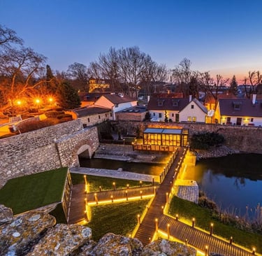 Nestled in the historic town of Tata, Platán Gourmet Étterem resides beneath the shadow of the castle on Kastély tér, in a beautifully converted former servants’ building of the Platán estate. The restaurant was elevated to national prominence under the leadership of chef István Pesti, who joined in 2015 and guided the venue to become Hungary’s first rural restaurant awarded two Michelin stars in 2022. The setting by the Old Lake and the Esterházy mansion evokes a sense of serene refinement, blending historic charm with high culinary ambition, opening a new chapter in countryside fine dining just about forty-five minutes from Budapest.